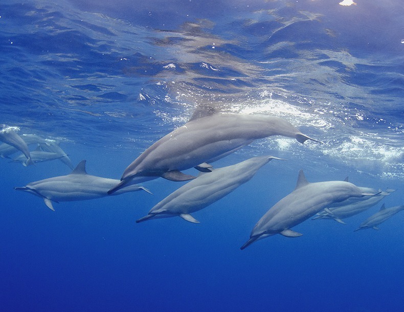 Spinner dolphins (Stenella longirostris) in a small inlet off the Kona coast, Hawaii.
